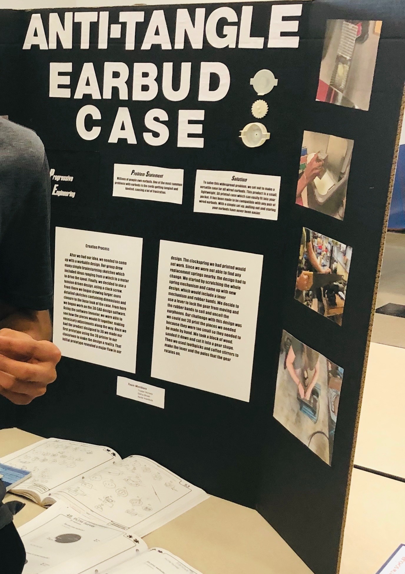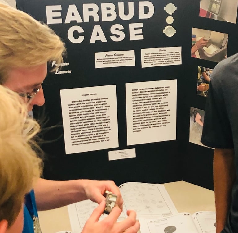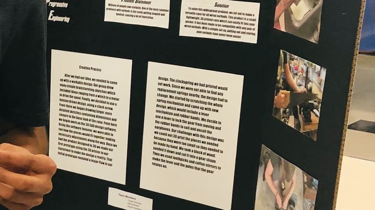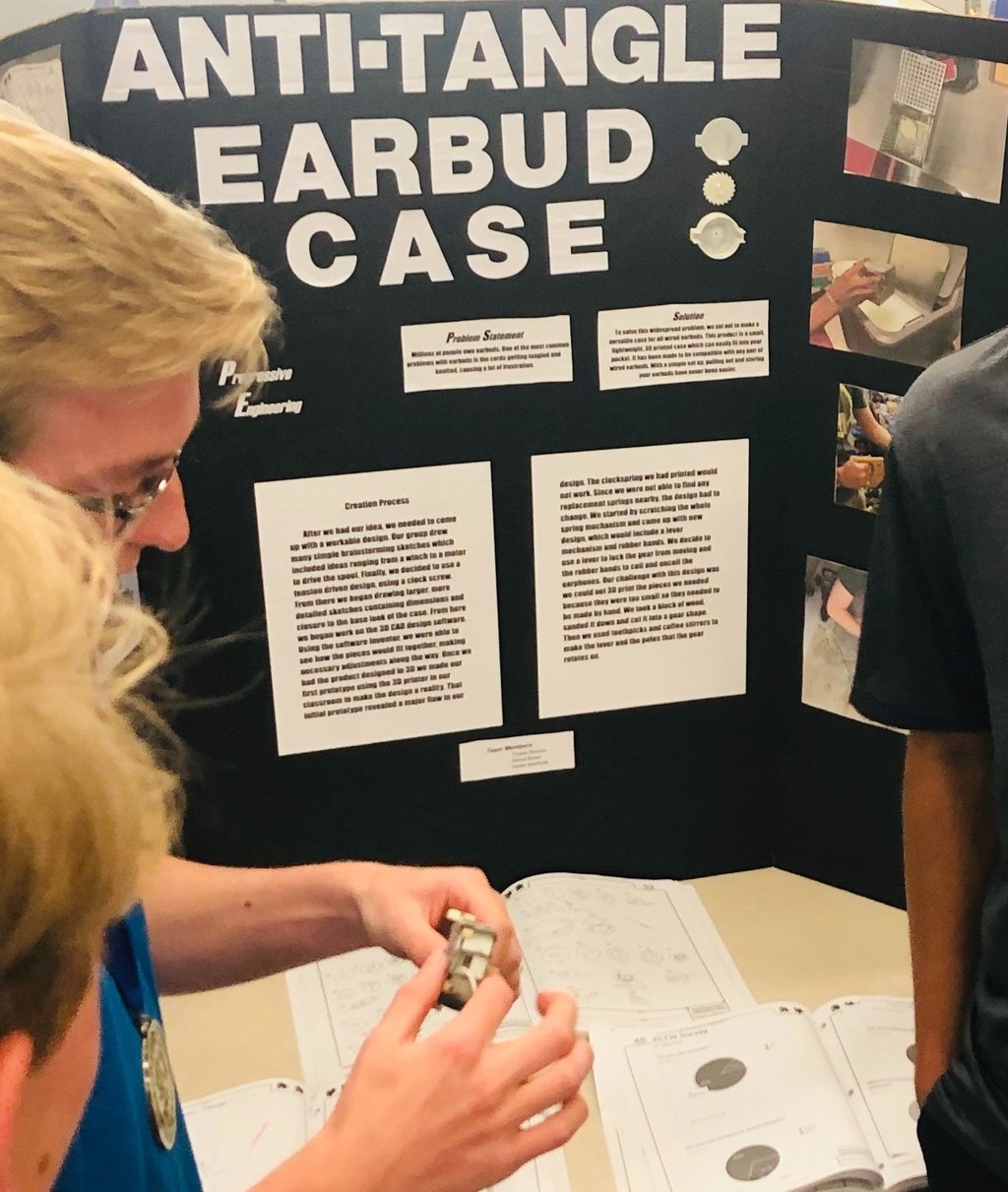 ● An interdisciplinary group engineering design project that warns headphone users of potential hearing damage; assisted with fabrication, design, and created adequate tolerance fits for electronics sub-assembly within the final design. As a Mechanical Engineer, I worked with two electrical and Computer Engineers, one aerospace engineer, and one structural engineer. Building on my experience with 3D printing for audio applications from the previous spring, specifically with the Anti-Tangle Earbuds Case (shown below), I contributed to the development of the use case for the final working prototype for this specific situation, in addition to the technical aspects.
