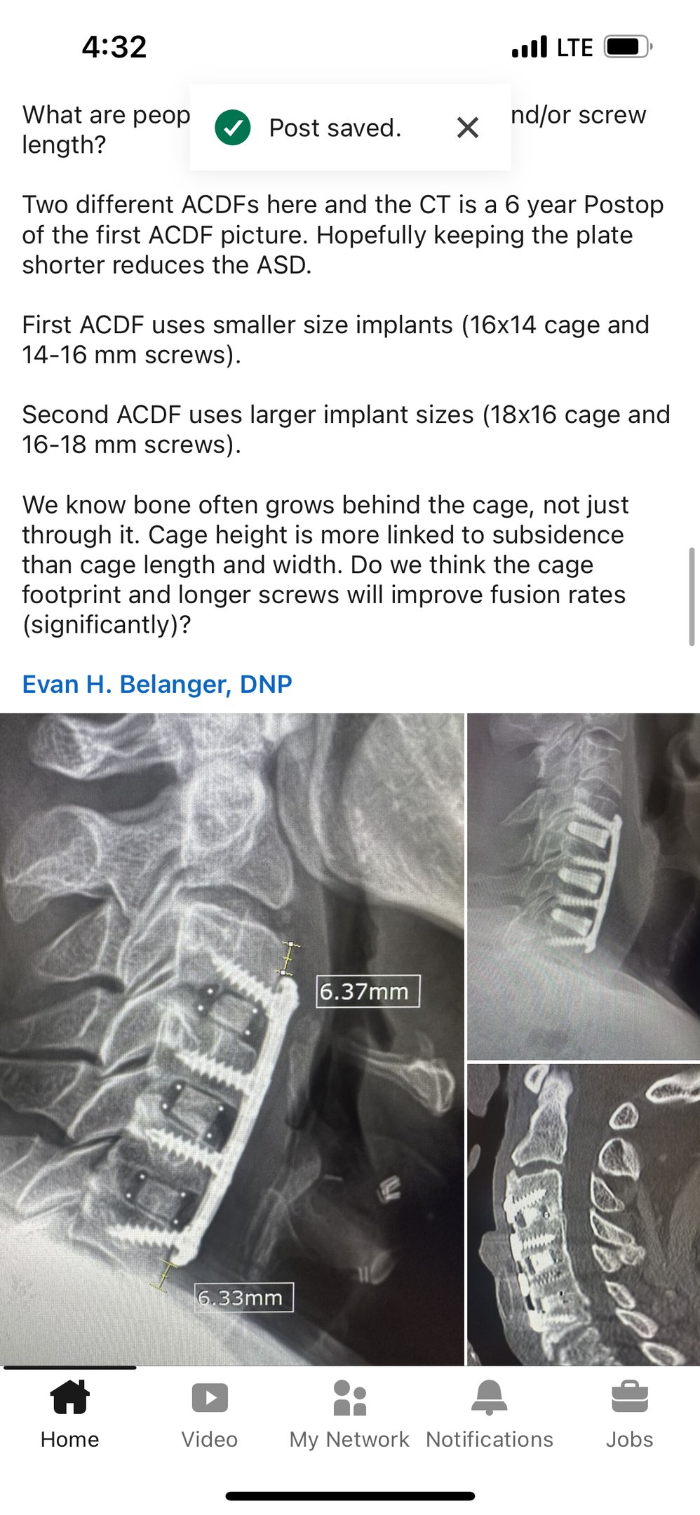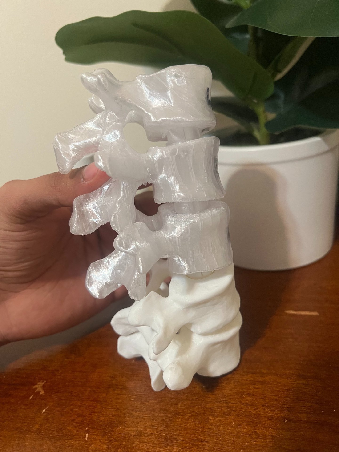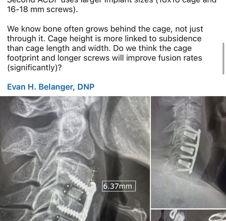 This is a PETG translucent print for a past ACDF surgery, and I wanted to print out real-life, slightly larger parameters to explore the importance of them in surgeries. In this LinkedIn post, surgeons commented on slightly larger parameters for plates being of interest in ACDF cases. In this back-tested case, I found that a slight increase in depth and size leads to slightly stronger plates (due to bending moment) by validating my print via compression and ultimately better use of screws with inserters (insertion).
