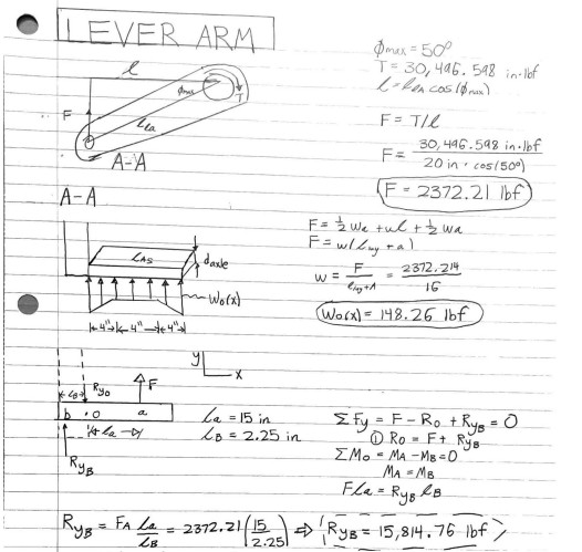 Designed a conceptual torsion bar suspension system for a vehicle; selected hot rolled steel as my chosen material to meet specified design criteria, as well as exceed required factors of safety. To further ensure optimal durability of the torsion bar, an extensive stress and fatigue analysis was conducted on all relevant components (shaft splines, lugs, coupling, axle, and torsion bar).