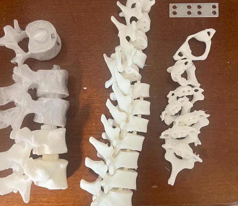 Upon graduating from college, I sought to refine my skills in 3D printing as they apply to the orthopedic space. This venture, which I have nicknamed CTLS due to its primary emphasis on the four regions of the spine, involves patient-specific 3D-printed (FDM)implants based on dimensioned pre-operative cases (as posted on LinkedIn by surgeons). For any dimensions not provided, I reached out to the surgeon to provide. I thought this would be a fun objective to challenge me, as it allowed me to practice my skills in a way that industry professionals would, whether the case be urgent or more specialized and requiring a longer time horizon. I also choose to print with FDM so I can become really good at form and fit, get a lot of practice, then progress to metallic 3D printing when my engineering career in orthopedics begins, and post-market applications become routine. The next potential step at CTLS is to design and scale the manufacturing of the fixtures using metal injection molding (MIM) and CNC machining for post-market use.