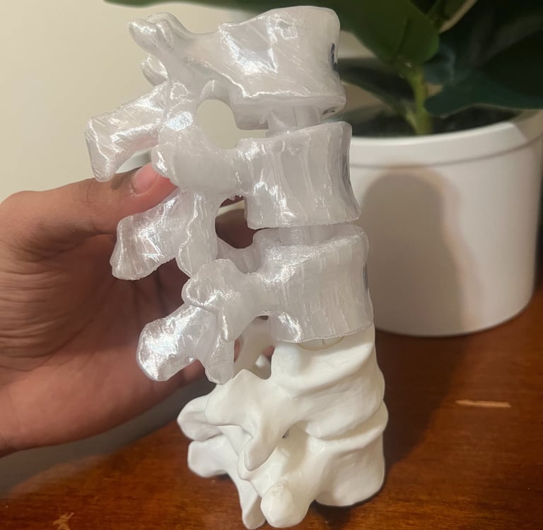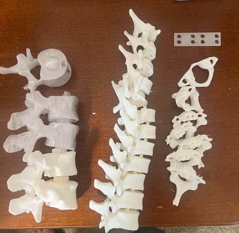 Upon graduating from college, I sought to refine my skills in 3D printing as they apply to the orthopedic space. This venture, which I have nicknamed CTLS due to its primary emphasis on the four regions of the spine, involves patient-specific 3D-printed (FDM)implants based on dimensioned pre-operative cases (as posted on LinkedIn by surgeons). For any dimensions not provided, I reached out to the surgeon to provide them. I thought this would be a fun objective to challenge me, as it allowed me to practice my skills in a way that industry professionals would, whether the case be urgent or more specialized and requiring a longer time horizon. I also choose to print with FDM so I can become really good at form and fit, get a lot of practice, then progress to metallic 3D printing when my engineering career in orthopedics begins, and post-market applications become routine. The next potential step at CTLS is to design and scale the manufacturing of the fixtures using metal injection molding (MIM) and CNC machining for post-market use.
